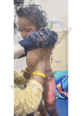 Master Monty, 3 years old accidently came in contact with boiling oil pot and got burnt. The parents are from…