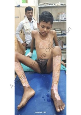 Master Prince, 8 years old accidentally came in contact with hot water and his body got up to 35% thermal…